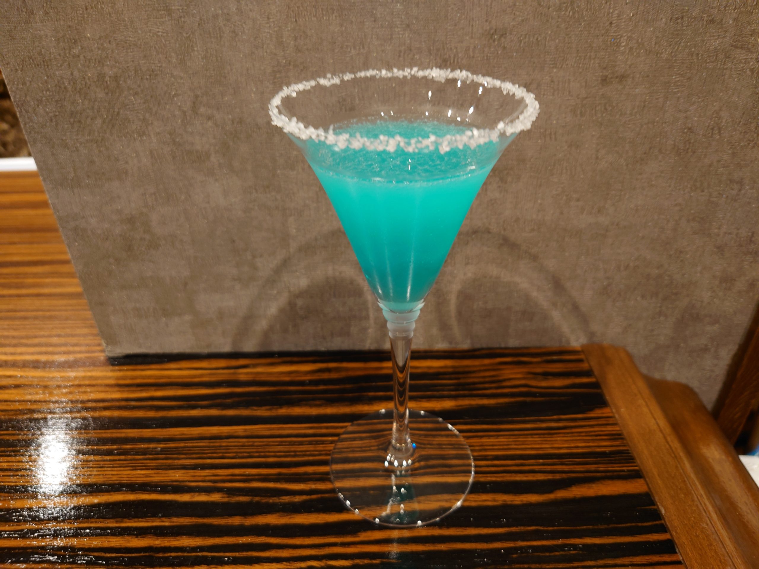 PATRÓN Silver, Lime juice, Italian hazelnut liqueur, Dutch blue curacao パトロン シルバー、ライムジュース、イタリア産ヘーゼルナッツリキュール、オランダ産ブルーキュラソー